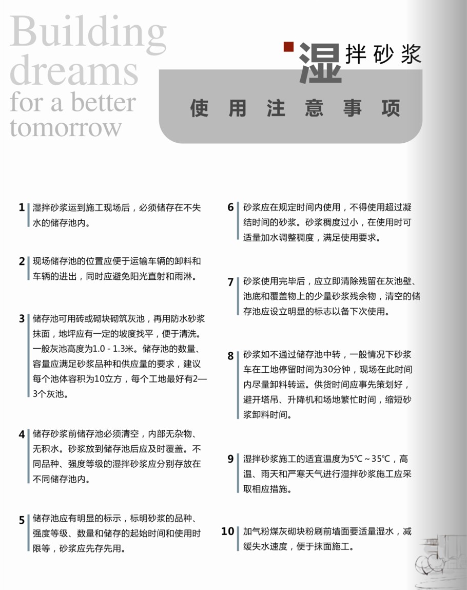 公司按照對每一方混凝土負責(zé),對每一個工程負責(zé),對每一個客戶負責(zé),讓每一個客戶滿意的精神,以雄厚的技術(shù)力量,完善的質(zhì)量保證體系,超強的綜合實力與您牽手,譜寫合作雙贏新篇章。